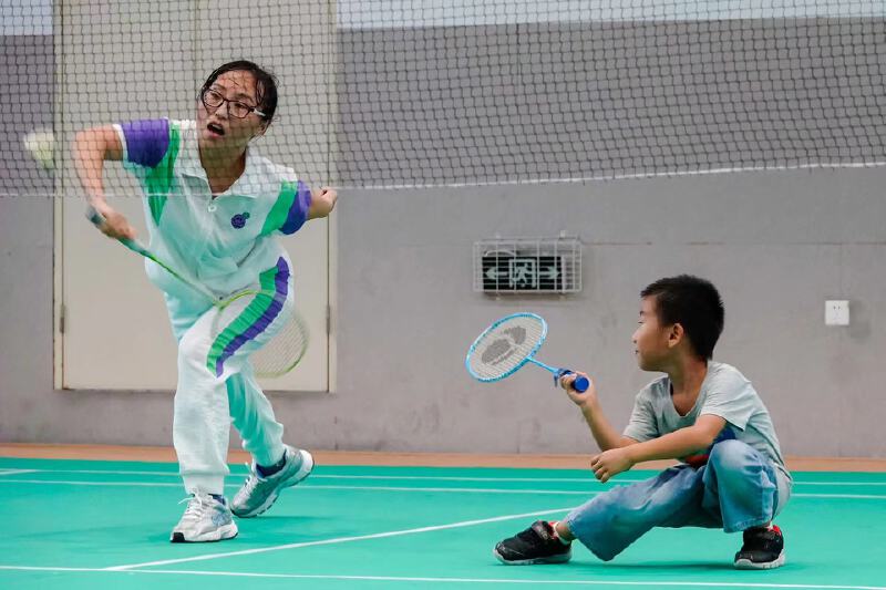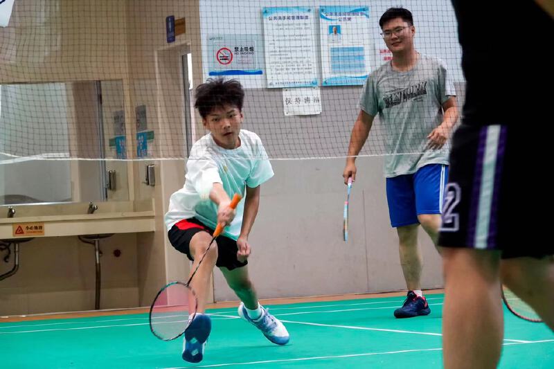 ▲市民正在学校体育场馆打羽毛球