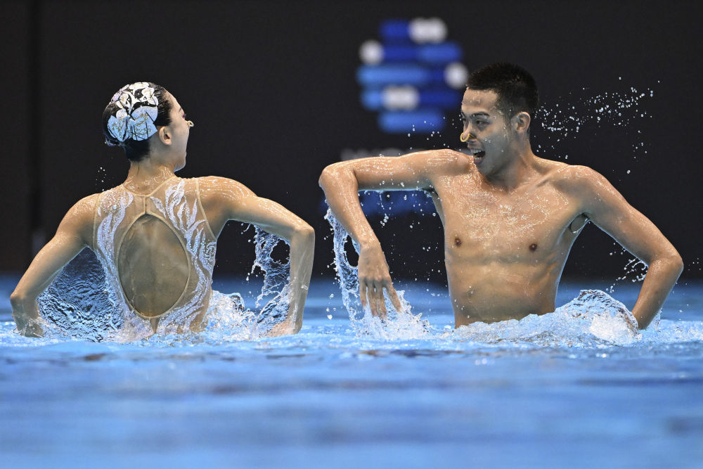 在22日进行的福冈游泳世锦赛花样游泳混双自由自选决赛中,中国组合石浩玙/程文涛夺得冠军,这也是中国队该项目的首枚世锦赛金牌。