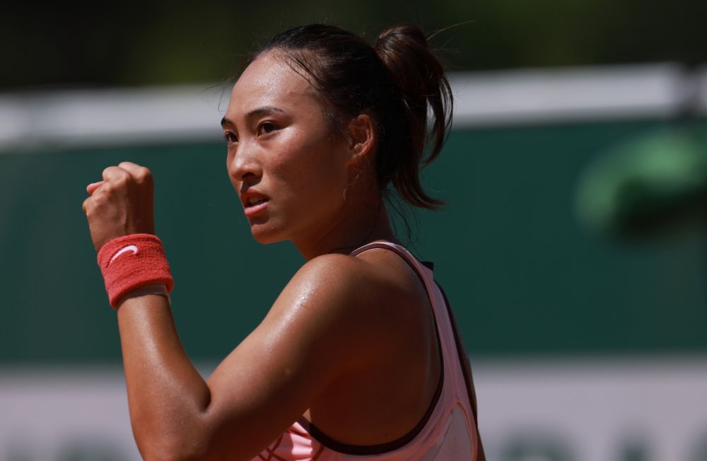 5月31日,郑钦文在法网比赛中。新华社记者 高静 摄