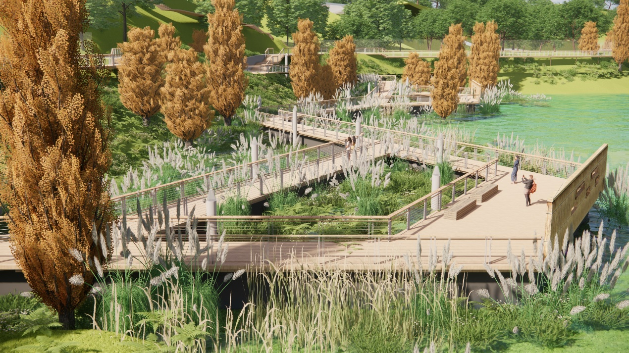 光明湖碧道以“西侧共享、东侧保育”为设计原则,打造“六区、一馆、两舞台”的景观空间结构,下面快让我们来一睹未来碧道的核心打卡点吧!