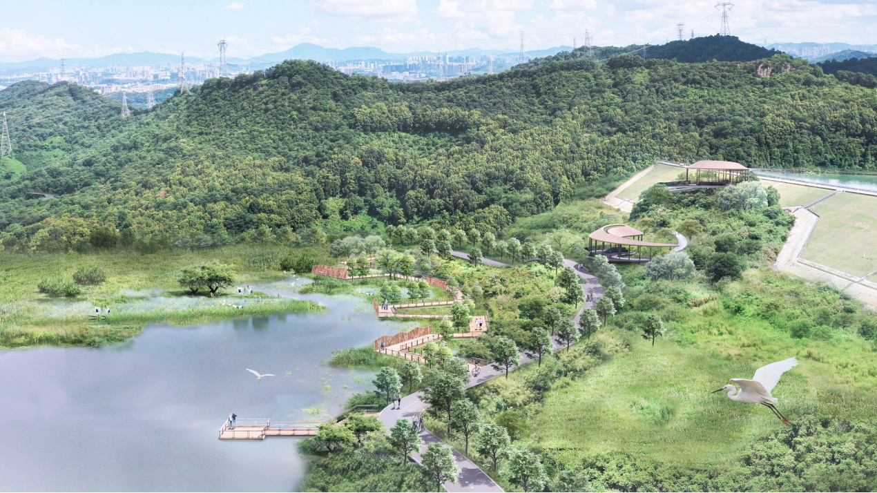以低干预的设计手法为市民提供观察鹭鸟栖息地的研习场所,让市民尽享湖库生态本底的自然之美。