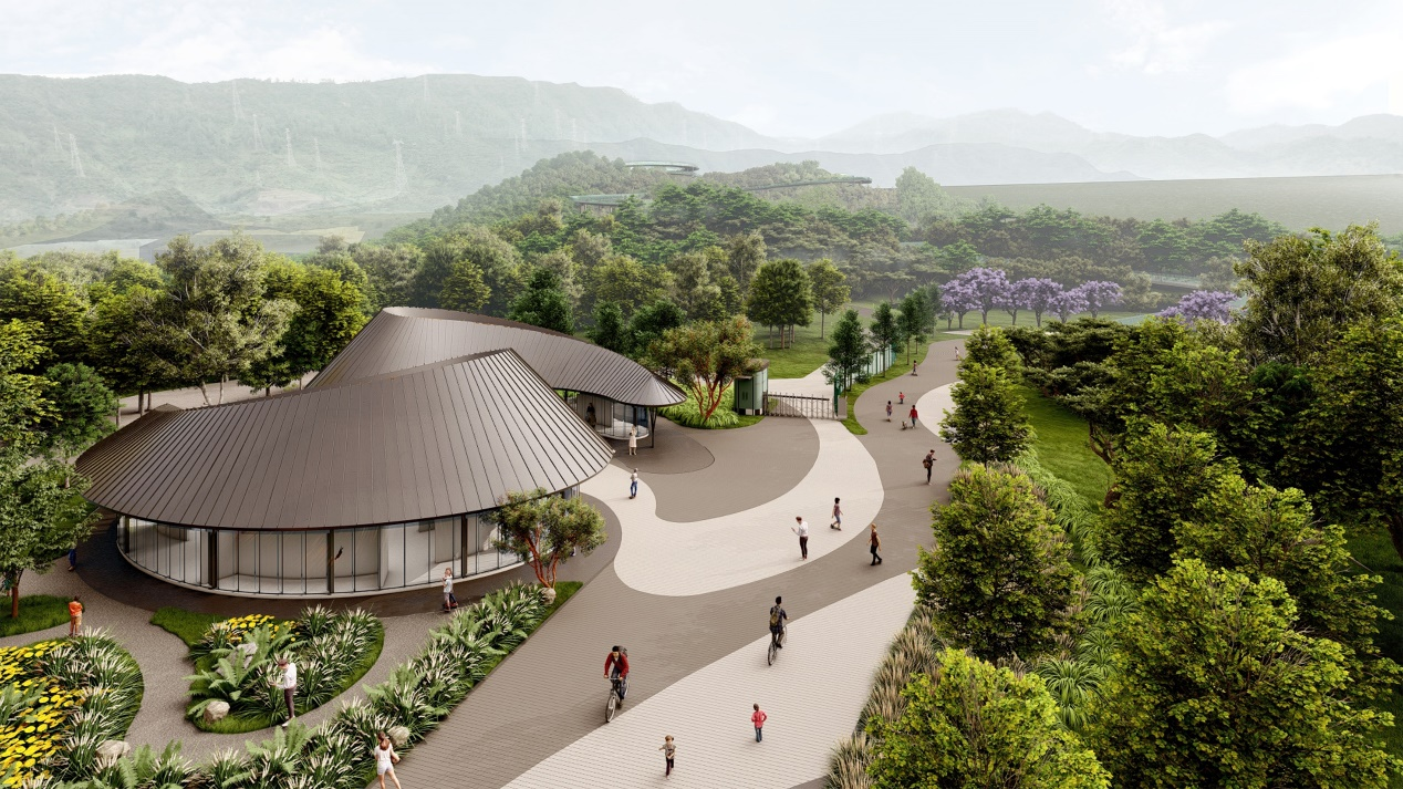 以交融的双水滴为灵感,打造东林绿道门户的标志性建筑,为市民提供一处休闲驿站和可深度体验的水文化展览馆。