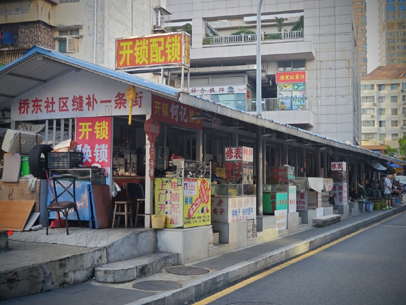 穿过一片洋溢着儿童嬉笑声的小小游乐场,就是传说中的桥东社区缝补一条街。