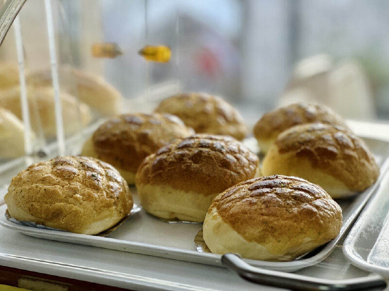 店面看上去朴实无华,甚至有了岁月的痕迹,但门口新鲜出炉的酥皮蛋挞的诱人奶香招揽着人不自觉走过去,小朋友们在里面挑选着酥脆金黄的菠萝包、满满椰丝的奶油包……每一口是小确幸也是日后的童年味道。