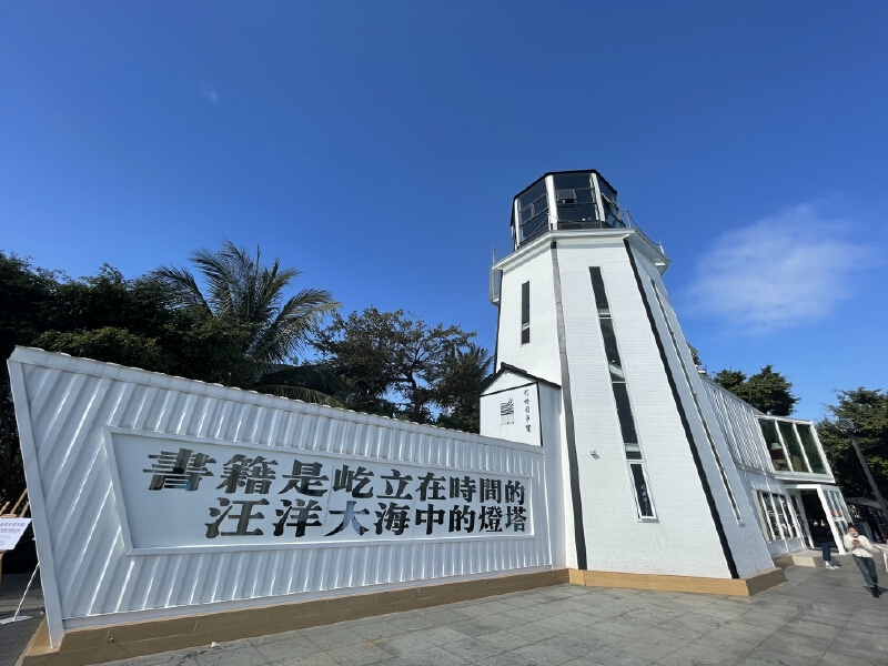 而栈道旁有一个网红打卡点——灯塔图书馆,其显眼的白色灯塔造型十分亮眼,馆外还设有几处座椅供歇息,馆内采光极好,顶楼拥有绝佳视野,无边海景尽收眼底。