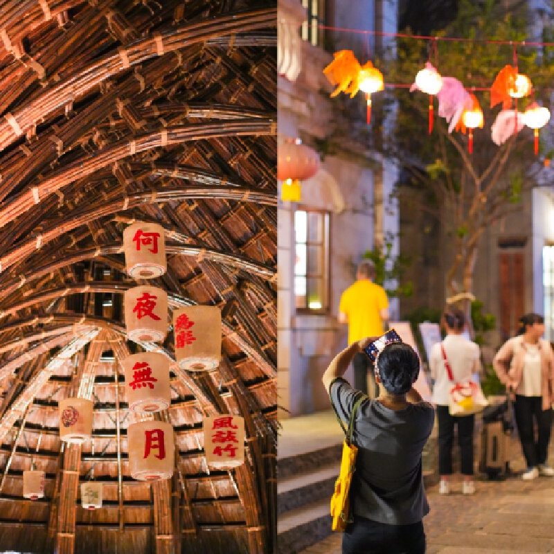 假期里,南头古城点缀出了条条“月下灯街”,东阳竹丝行灯与潮汕竹编油纸灯笼的“非遗”手艺交错于街道间,在充满中国传统氛围的中秋良宵里,月下赏灯,何其愉快。