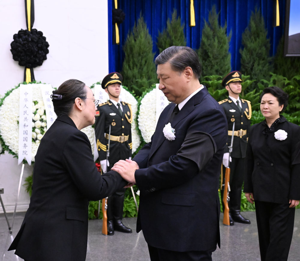 11月2日,李克强同志遗体在北京八宝山革命公墓火化。习近平、李强、赵乐际、王沪宁、蔡奇、丁薛祥、李希、韩正等前往八宝山送别,胡锦涛送花圈表示哀悼。这是习近平与李克强亲属握手,表示深切慰问。新华社记者 谢环驰 摄