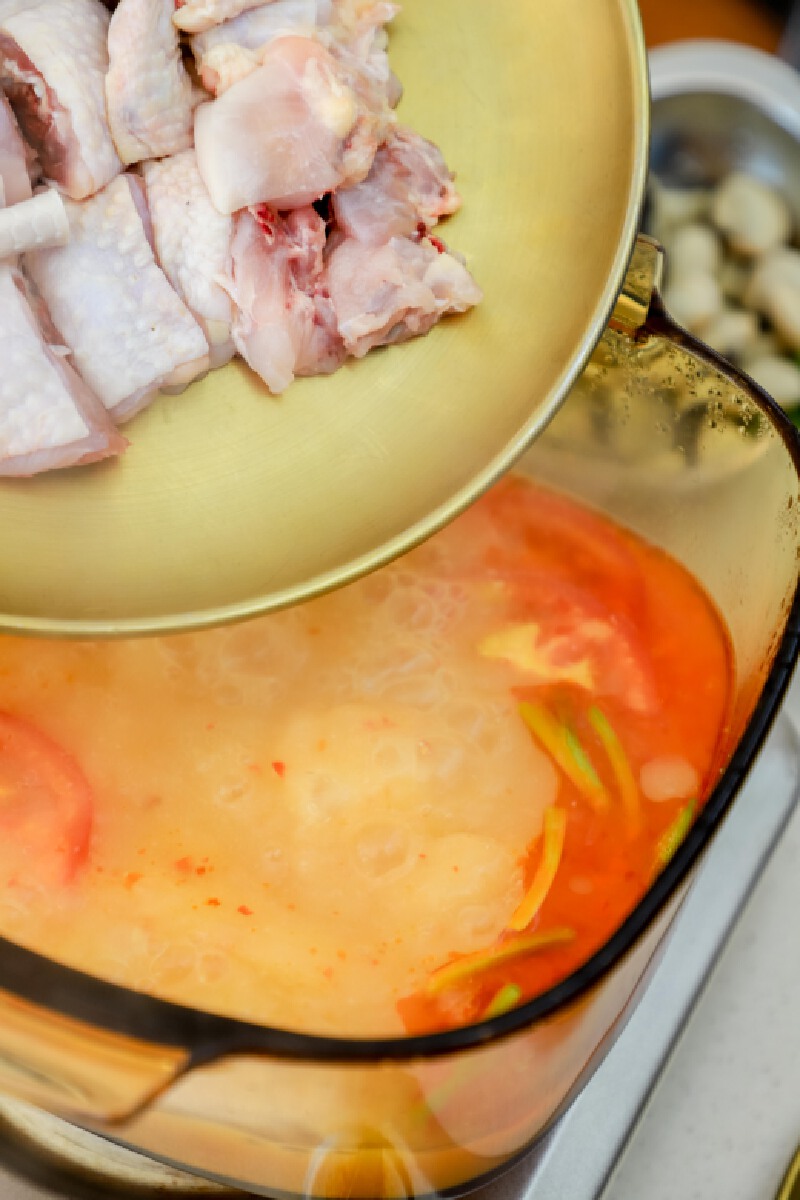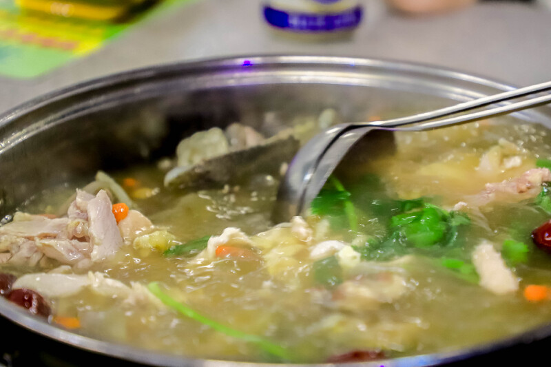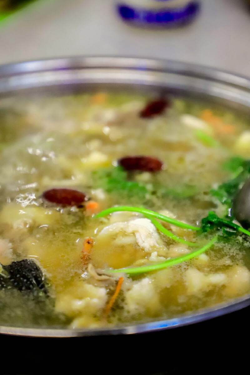 脆皮鸡火锅可谓是清淡养生火锅的天花板,火锅的精髓则蕴藏在那令人陶醉的五指毛桃汤底,当你踏入餐馆的那一刻,五指毛桃的浓郁香气便迎面扑来,带着淡淡的奶香与甜美。