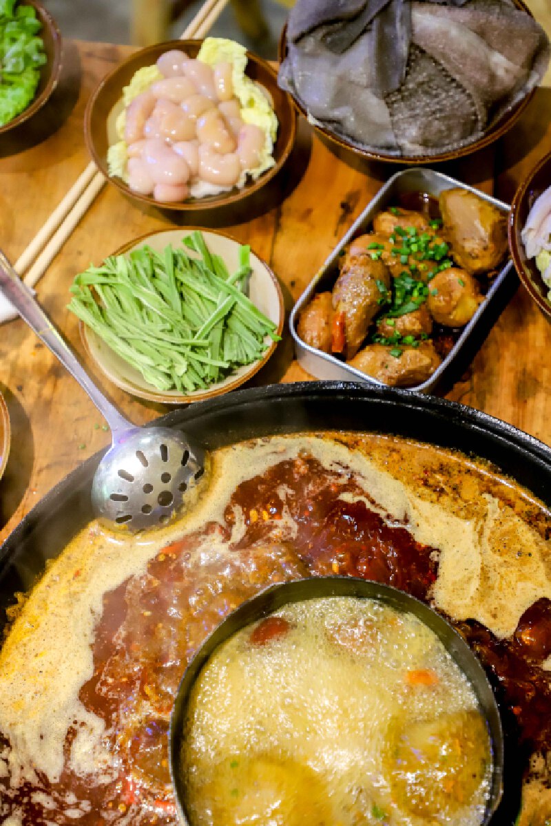 谈及四川火锅,自然少不了它的绝配——应齿而断的毛肚、脆而不腻的鸭肠、鲜嫩的黄辣丁、绵柔的鸭血、香浓的脑花,以及那能吸足汤汁的芋头。