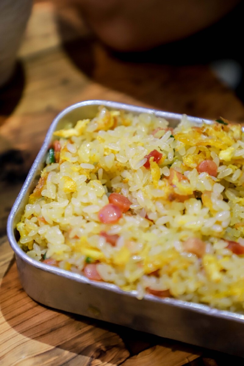 对川渝人来说,一顿火锅的收尾必定少不了一碗香喷喷蛋炒饭。猪油和酱油的香气已经浸到了米粒缝里,每一口都能吃到满满的咸香。重口味的人,再混着火锅菜一起吃,轻轻松松干完一碗。
