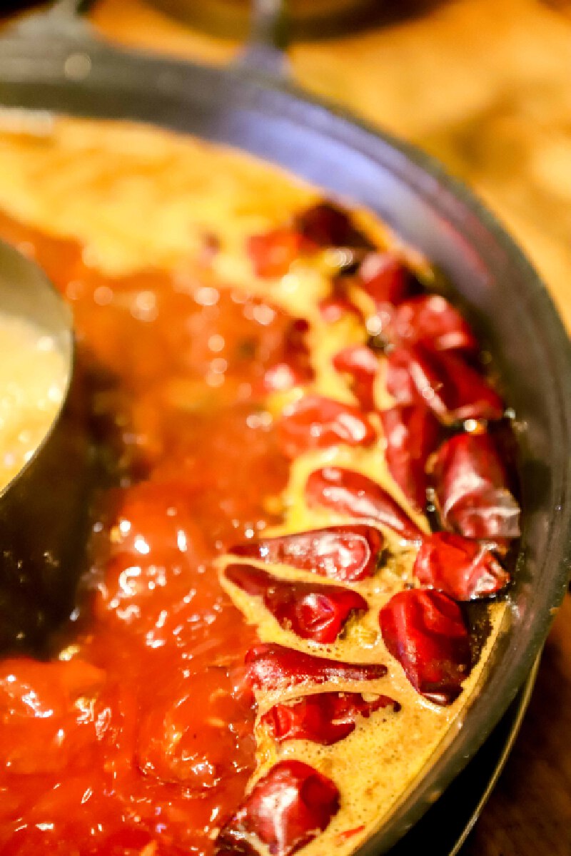 四川火锅美味不美味,精髓就藏于汤底。正宗四川火锅的特点在其厚味重油的麻辣汤底,这汤底的独特之处,来自于精选的四川本地产辣椒、醇厚的豆瓣酱、永川豆豉、甘孜的牛油、汉源花椒以及大量的香料。经过大厨的调制,浓郁的红油在锅中翻腾,那鲜辣的气息在空气中弥漫开来,仿佛在对味蕾发出无声的邀请。