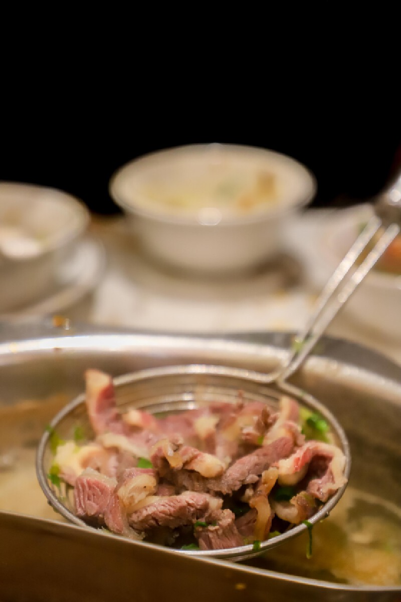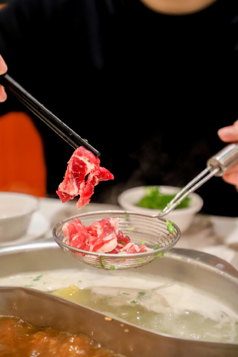 而一顿美味的涮肉之所以令人难忘,关键在于羊肉的品质。选用的羊肉是精心挑选的,新鲜的羊肉,切成极薄的片,颜色红润,肉质紧实,立盘不倒。涮煮时只需轻轻一烫,便迅速变得柔嫩,羊肉最初的鲜美被保留,原汁原味。肉片在口中轻轻散开,既不腻人也不干柴,其肥而不腻,瘦而富有弹性的特点,使得每一口都是一种无以言表的鲜美,不留任何余味在牙齿之间。