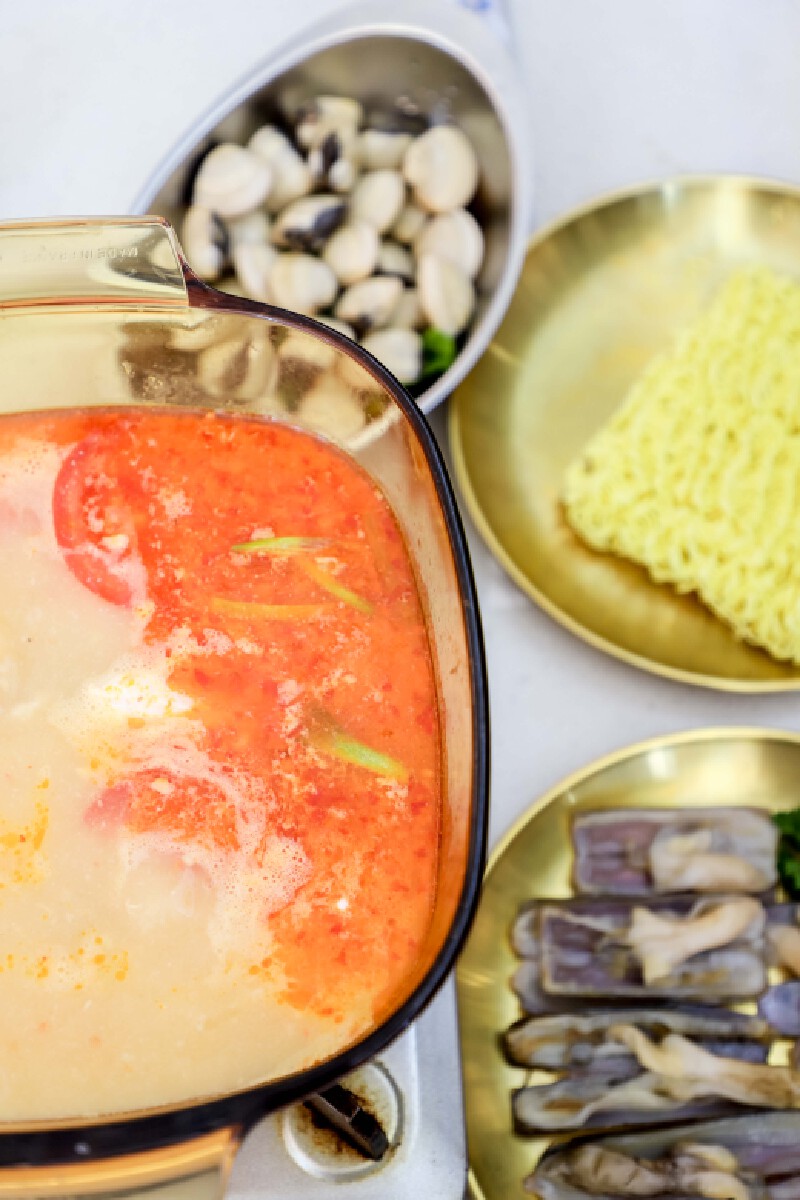 品尝海南糟粕醋火锅的最佳方式是“先涮小海鲜,再喝一碗酸”。先来一口汤,感受那糟粕醋的酸辣,酸爽从口到喉,接着尝一尝经糟粕醋汤底烹煮的海鲜,它们不仅失去了腥味,而且鲜味更加凸显,令舌尖留下深刻的鲜嫩回味。