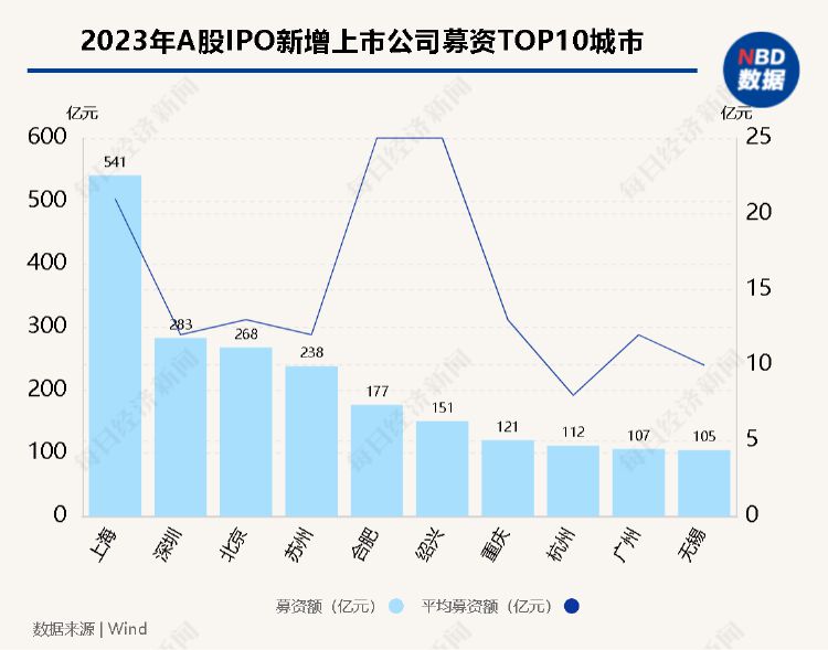 从募集资金金额来看,上海市以541亿元排在第一,其次则是深圳市的283亿元,再接着是北京市的268亿元。