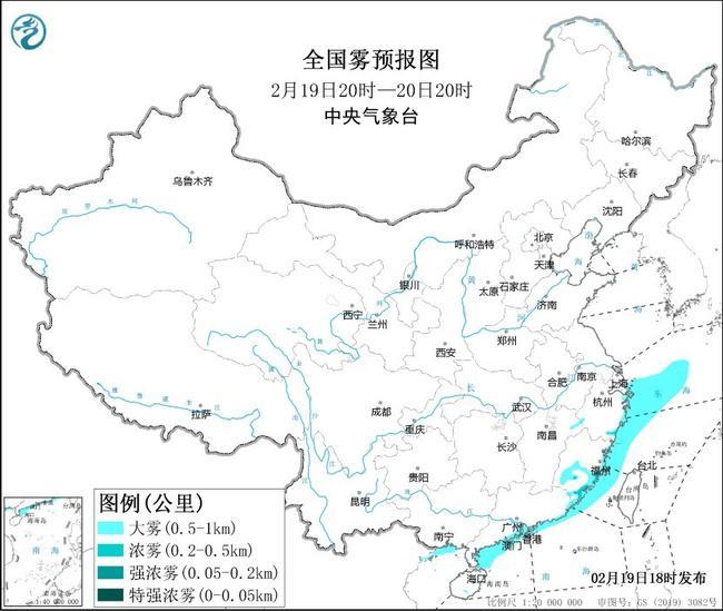 大雾黄色预警:预计,19日夜间至20日白天,东海西部海域、浙闽沿岸海域、台湾海峡、广东沿岸海域、广西沿岸海域将有大雾,20日早晨至上午,琼州海峡东段海域将有大雾,能见度不足1公里。此外,19日夜间至20日上午,福建中南部等地将有大雾天气,局地有能见度不足200米的强浓雾。