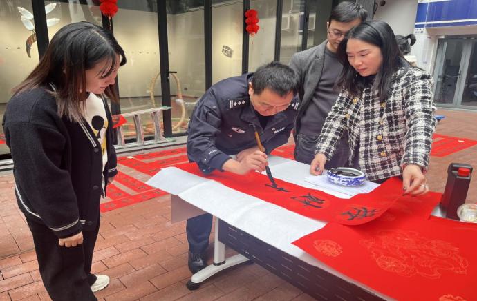 水湾社区党委与南海意库物业在南海意库开展党企共建活动——“翰墨迎春,福启龙年”写春联、送祝福,社区党委发动“双报到”党员、“五长六岗”人员、社区志愿者、热心居民、社区妇联、团委、关工委等积极参与,为辖区内的居民与企业送上新年祝福,实现社区党建与企业同频共振与融合发展。