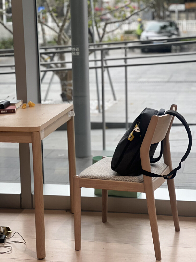 图书馆无需预约,直接进去即可。入口处就有一片自习空间。靠窗的一侧摆放的是高脚凳与长桌的组合,凳子带有浅浅的靠背,能帮助支撑腰部,户外的城市风光能在这里尽收眼底。靠墙的一侧是卡座,座椅很舒服,桌子的高度适宜,每个卡座都贴心地配备了充电孔,非常适合长时间沉浸式自习。