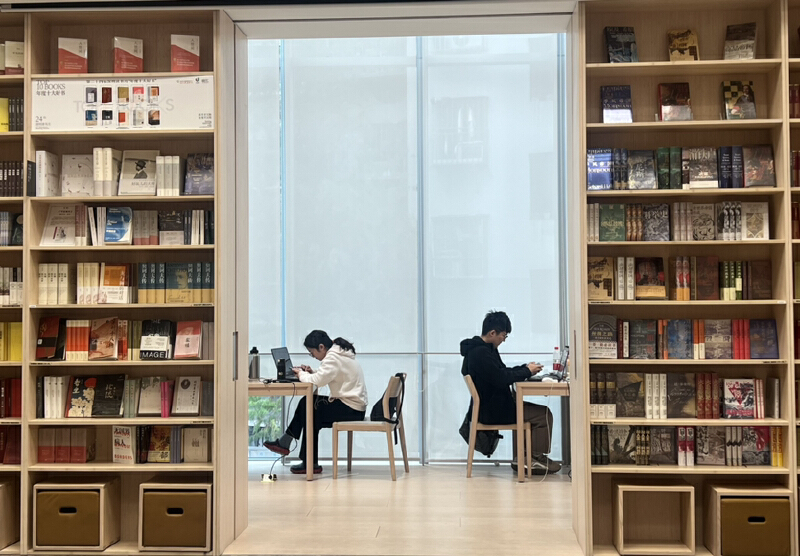 作为一间书房,书是这里的重头戏。这里藏书两万余册,涵盖了社科、文学、艺术等多个品类,读者可以自由取阅。一进去就能感受到整个空间里书香弥漫,人们都自觉保持安静,地面也自带消音效果,即便来回走动查找书籍,也不会打扰周围的人。