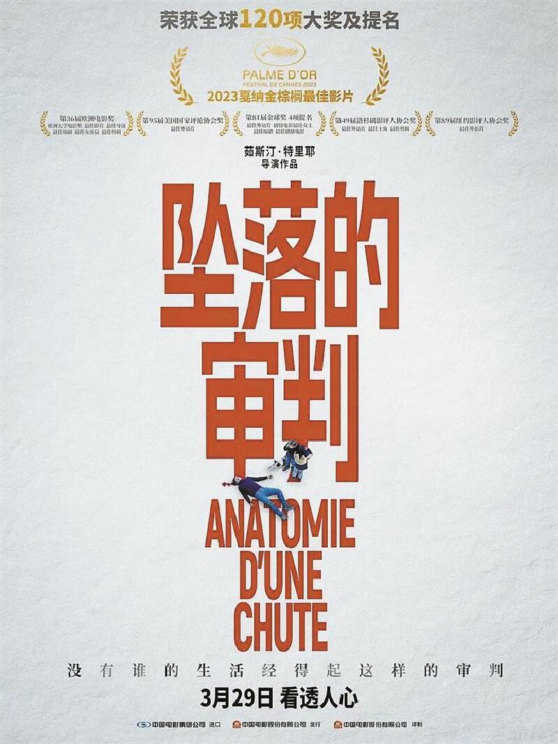 本月片单含“金”量极高。《坠落的审判》,这部女性导演创作的女性主义电影,先后斩获戛纳金棕榈大奖最佳影片、奥斯卡金像奖最佳原创剧本等重要奖项。尽管被标签为“以悬疑案件揭开婚姻面纱”,但《坠落的审判》却并没有像《十二怒汉》《毒舌律师》般,以控辩双方跌宕起伏的舌战,给予大快人心的明确结论;也没有如《革命之路》《五十年》那样,铺满夫妻间的相处细节,痛陈婚姻走向索然无味的现实原因。而是将婚姻与人性的探讨包裹在一场悬案之下,引发观众在两性议题上新的思考。导演通过对角色的深度刻画让观众看到,女性,她们生来就是高山而非溪流,她们璀璨生辉,她们闪闪发光,她们一生都是勇敢、浪漫且自由的。