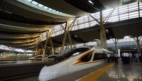 资料图:9月21日,首趟按照350公里速度运营的G5次复兴号动车组,在北京南站整装待发。