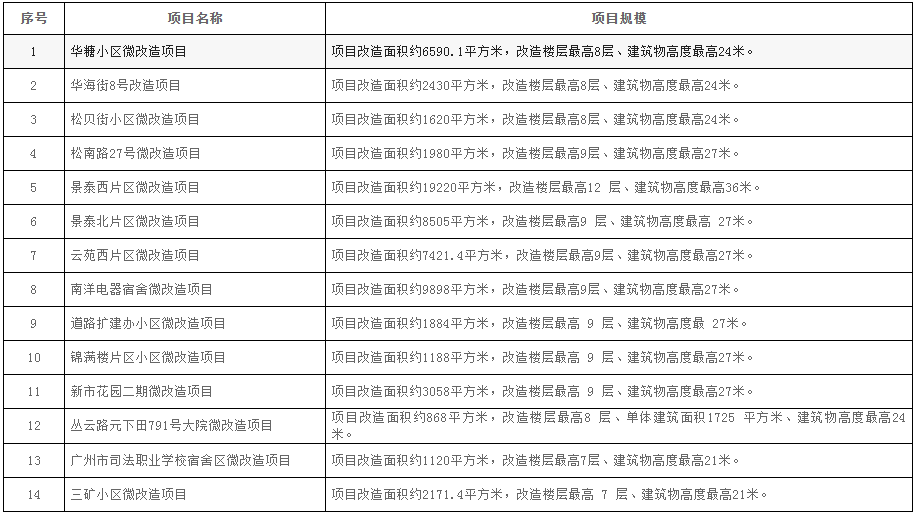 根据此前招标公告,14个老旧小区涉及松洲街、景泰街、同德街、新市街、永平街、鹤龙街、黄石街。此次招标内容公布了详细的改造方案。