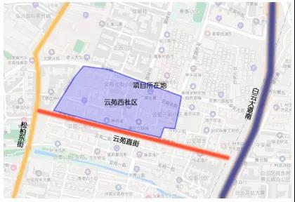 位于广州白云区,东至云苑东社区,南至云苑直街,西至百事佳新村,北至平安路。改造范围用地面积为 3.87 公顷,建筑总面积为 98996 ㎡ , 共 14 栋楼房,小区建设于 20 世纪 80 年代。