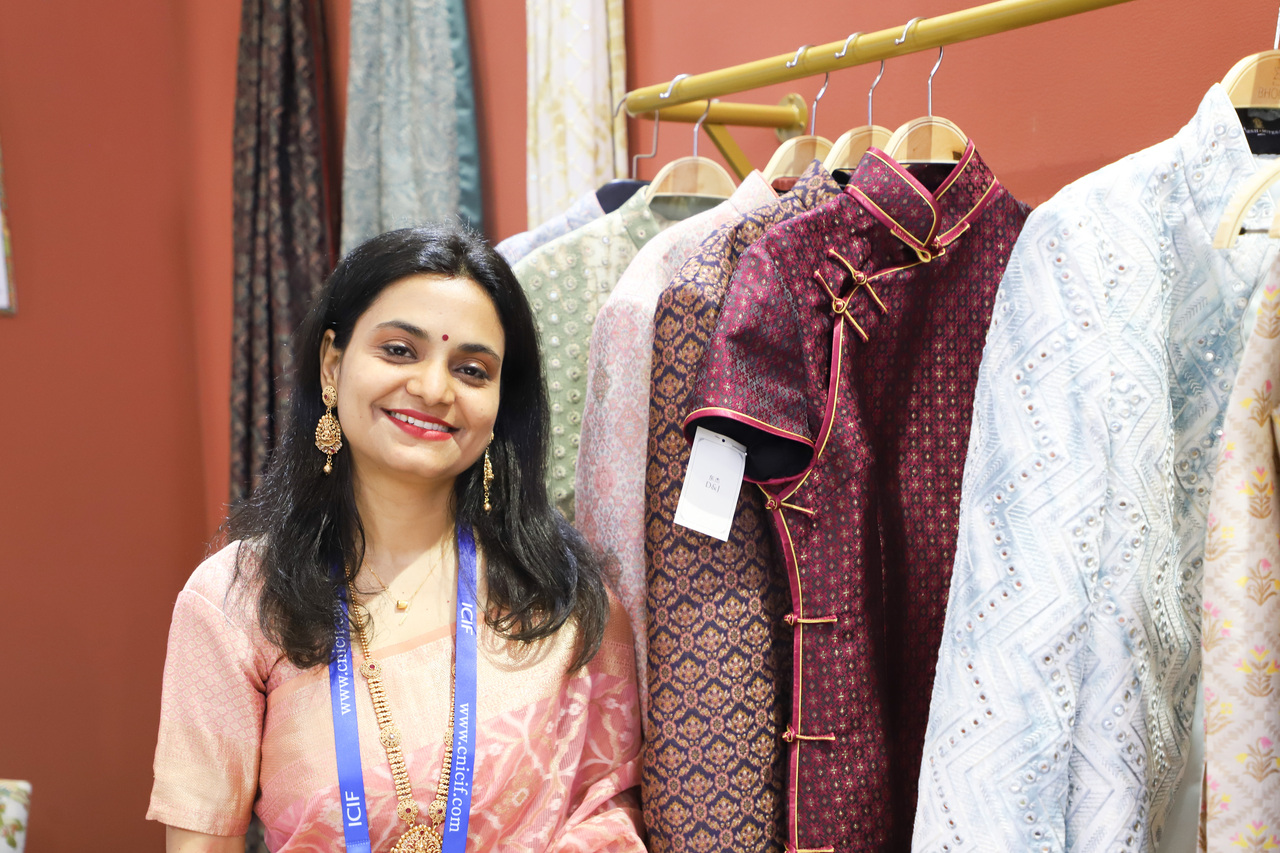 印度展团的D&J服装品牌引起了中国参观者浓厚的兴趣,因为它的参展服饰巧妙地将印度布料与中国风格融合起来。设计师Manisha Singh表达了对中华传统文化,尤其是中国传统服装如旗袍和盘扣的深度喜爱。她广泛学习了相关文化知识,希望通过融合中印元素的方式,将她的品牌推介给中国的消费者。