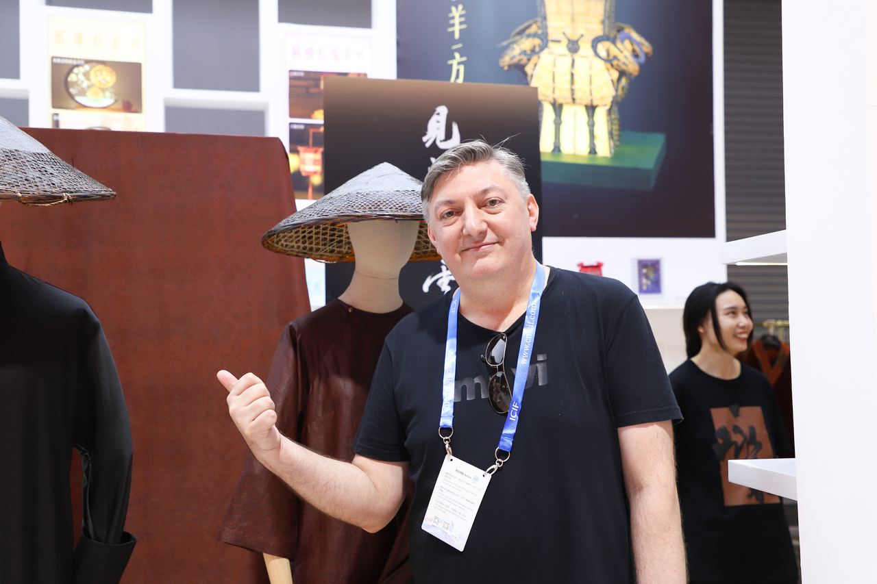 除了参展商,土耳其采购商Mehmet Akaryildiz告诉记者,他第一次参加文博会是在2019 年,但今年的文博会完全不一样了:“更多的国家、更多精彩的产品参加了展览,比以前更有趣,更有卖点,更吸引采购者。” 他举例说,深圳舞剧《咏春》中使用的香云纱面料非常漂亮,他很感兴趣。