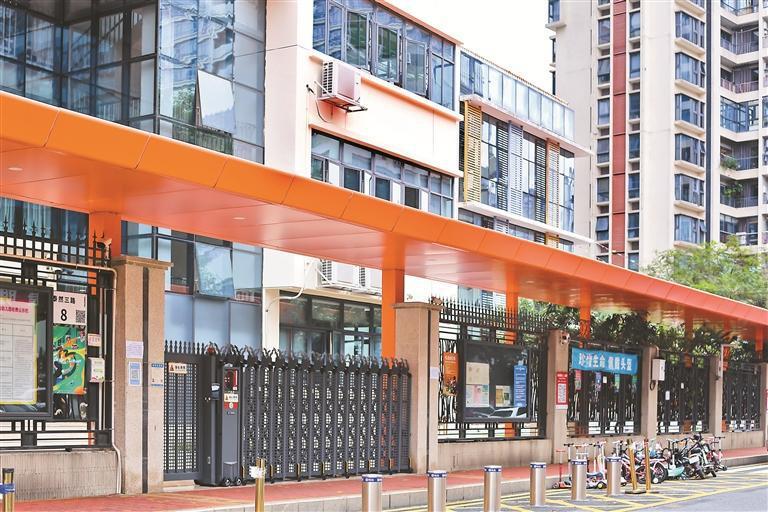 ▲在福田区天安实验幼儿园,沙头街道天安社区用56.6米风雨连廊架起孩子安心上学路。 深圳晚报记者 叶洋特 实习生 卢永昌 摄