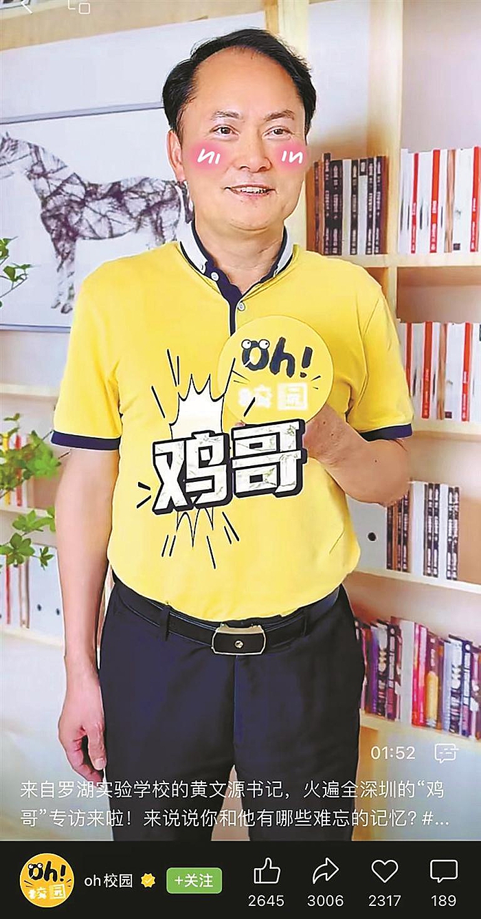 6月21日,一则视频在深圳的社交媒体上迅速走红。该视频的主角,是被学生们亲切地称为“鸡哥”的罗湖实验学校党总支书记黄文源。视频中,黄文源独特的教育方式引发了网友的热烈讨论,大量曾就读于罗湖中学、罗湖外语学校、罗湖实验学校、桂园中学的学生纷纷转发并深情评论。