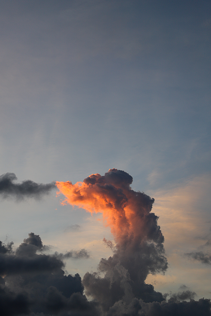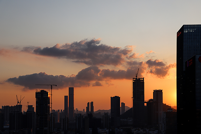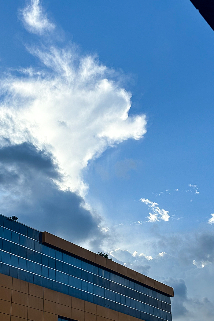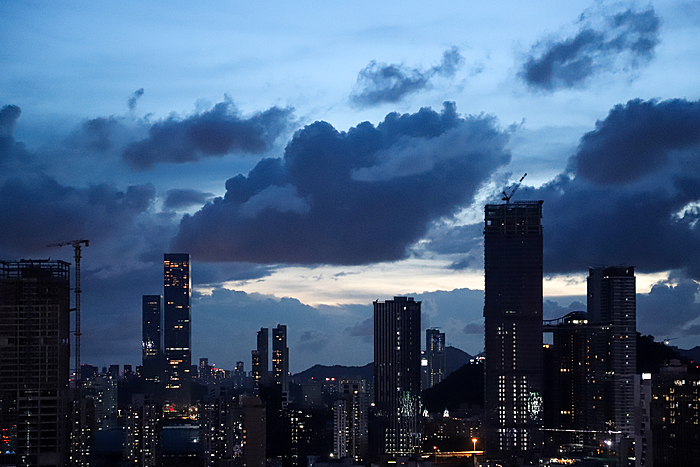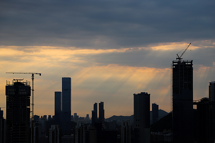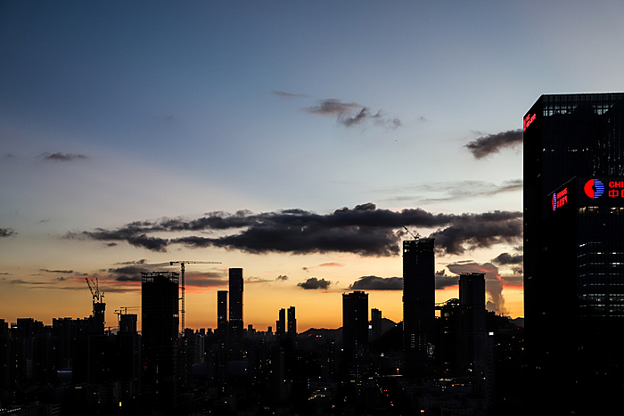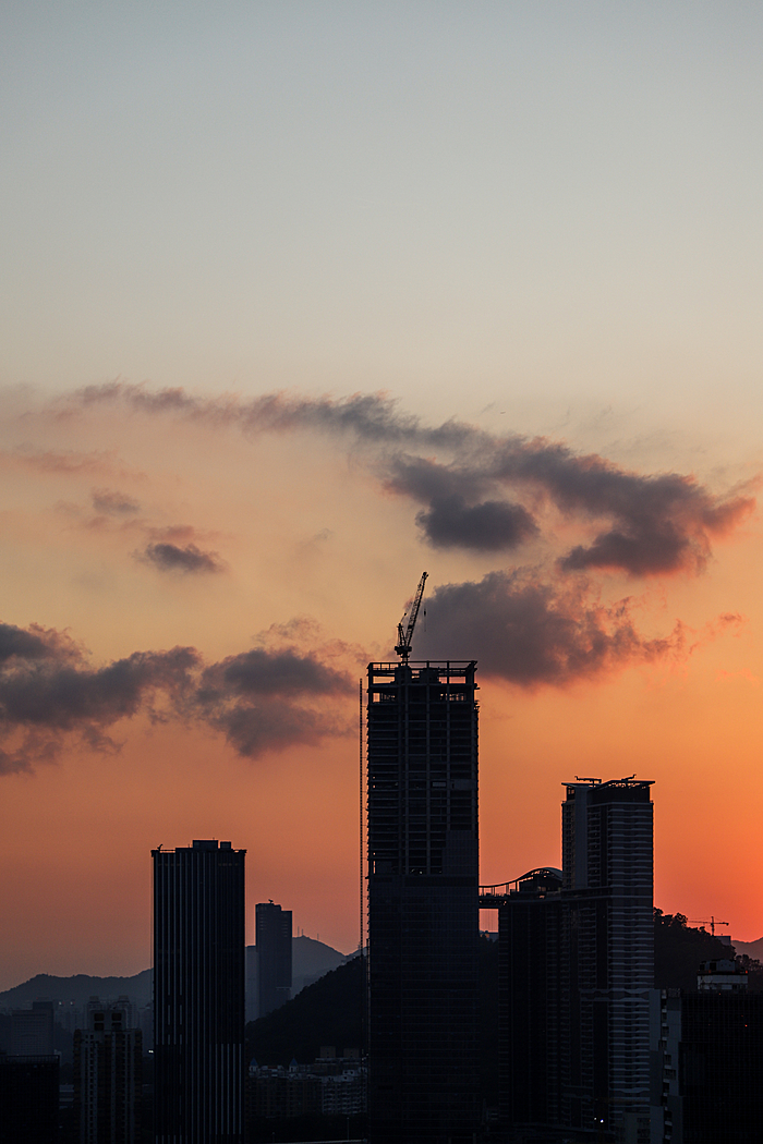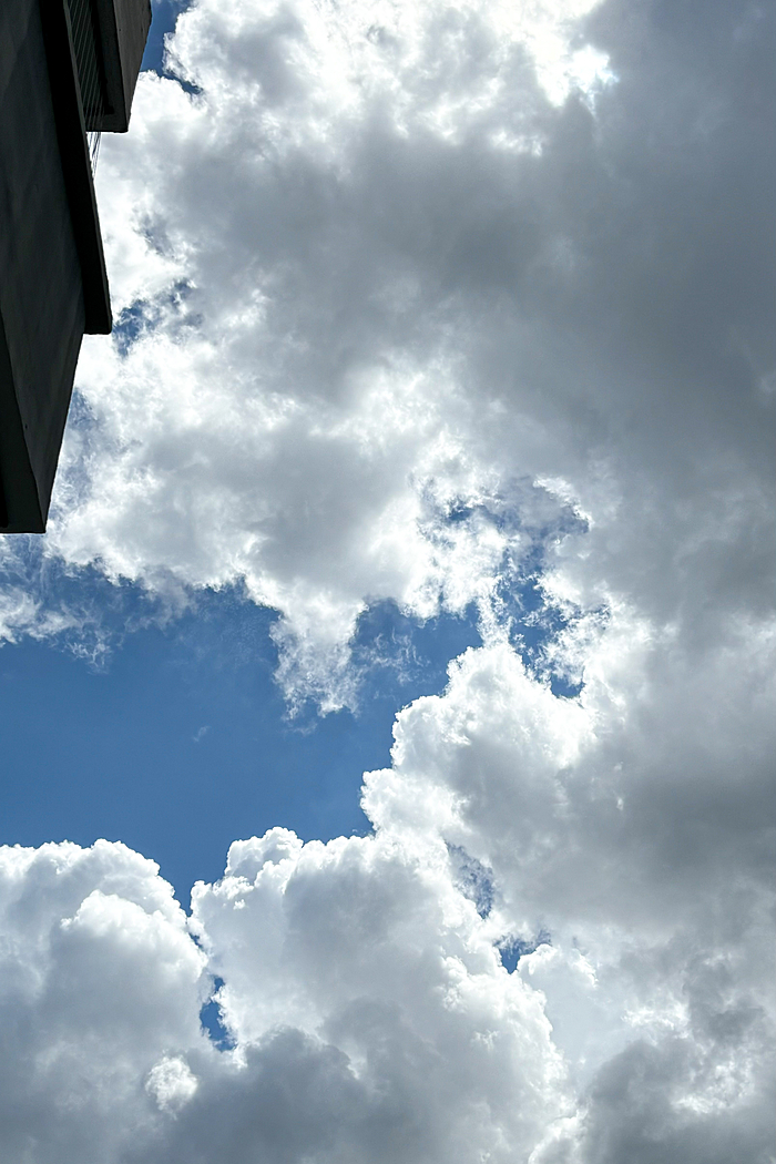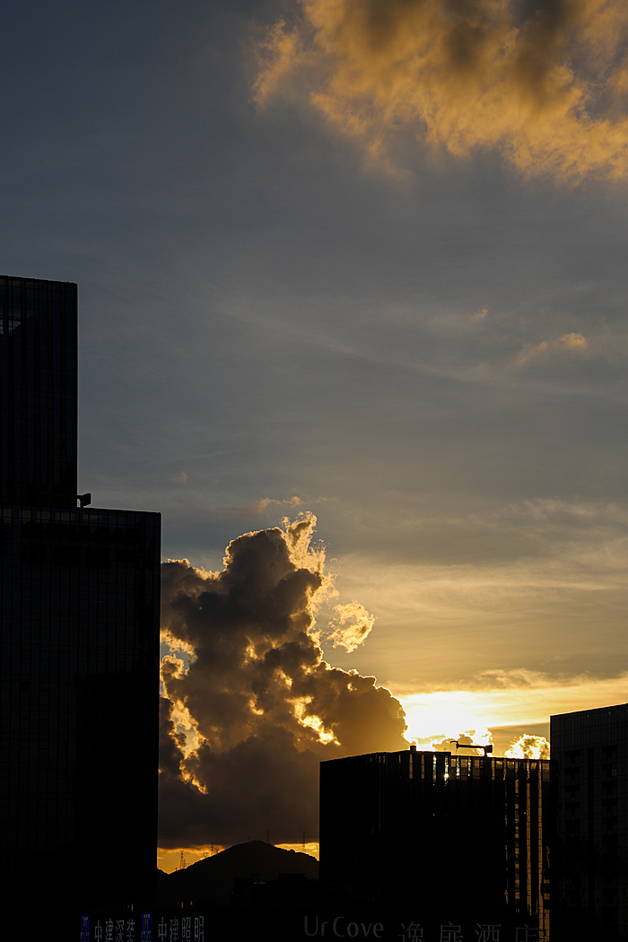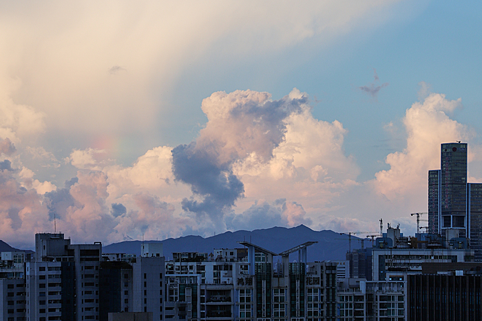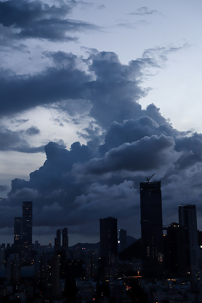 午后的深圳,天空常会变得更加戏剧化。炎热的阳光将海洋的湿润蒸腾成气,形成了壮观的积云。这些云彩堆积成山,厚重而深邃,顶部白得发光,底部则是暗沉的灰蓝色。