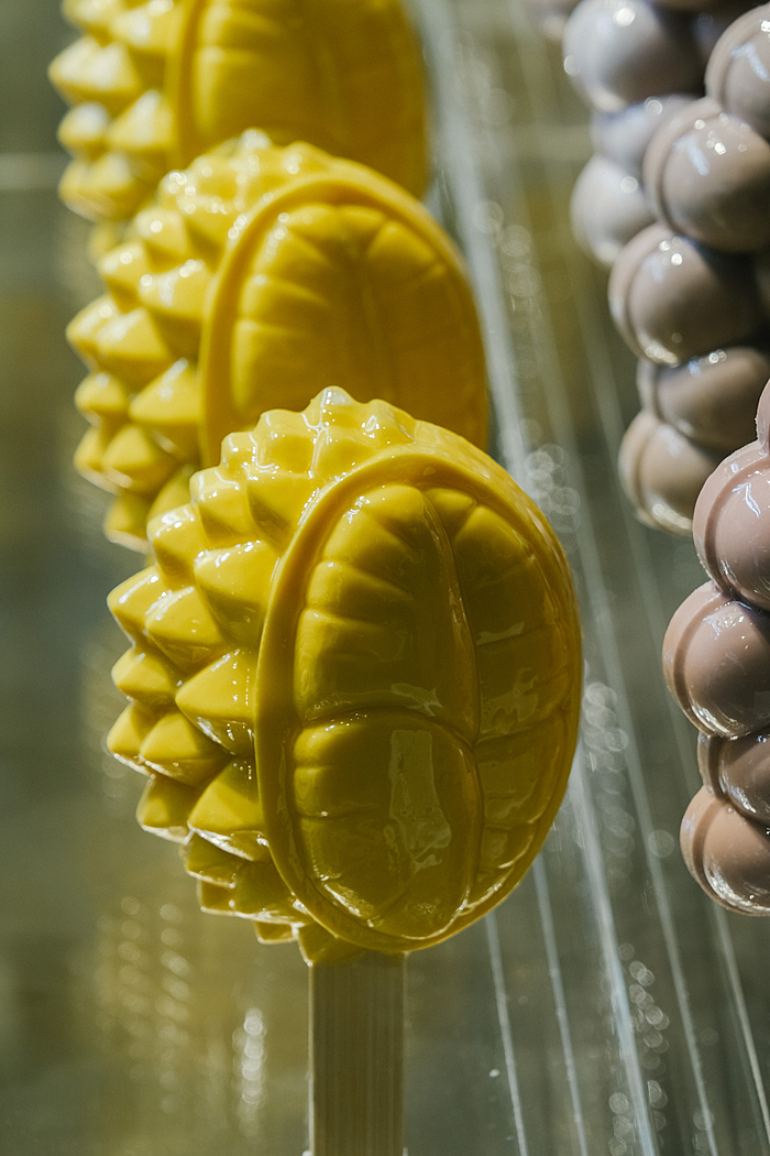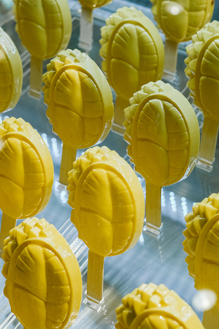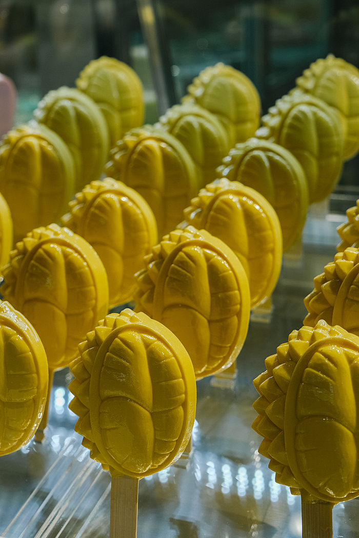 这根榴莲雪糕还原榴莲特有的外观,凹凸不平的纹理可爱至极,让人一眼难忘、爱不释手。