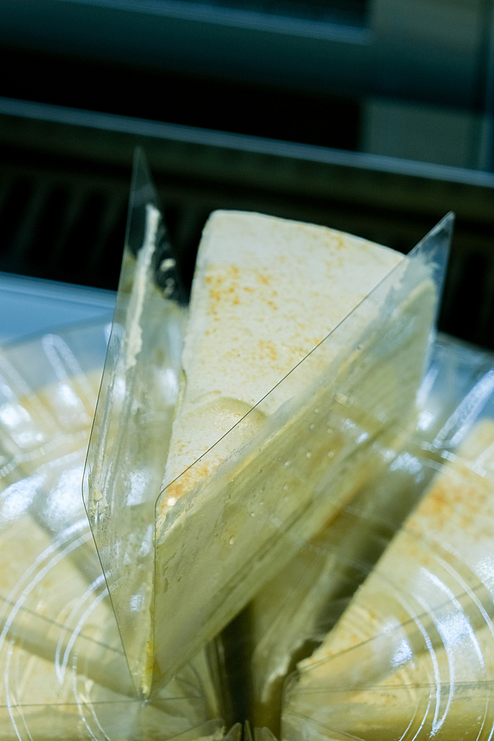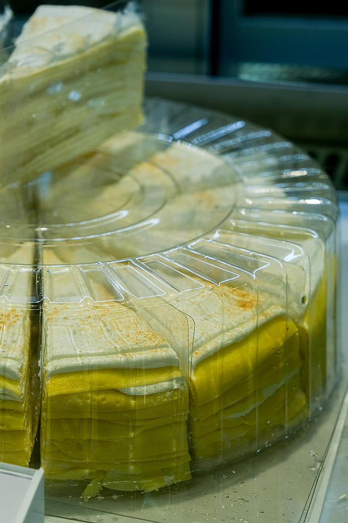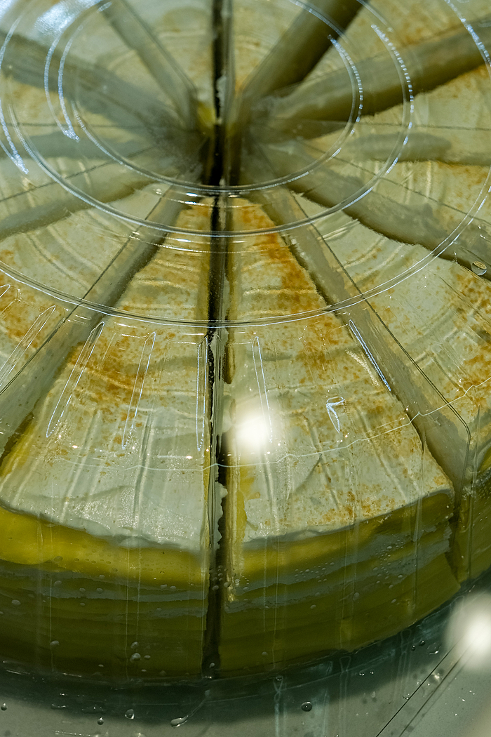 这一层层纤薄的饼皮中夹着榴莲与奶油,满溢出来的奶油,香甜的气息令人沉醉。