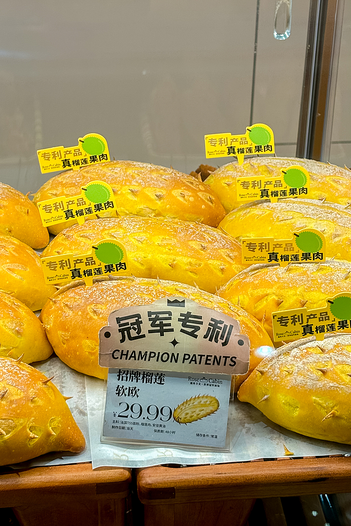 榴莲面包,碳水,是碳水啊!浓郁的榴莲遇上柔韧欧包,是从嘴到胃的十足满足感,这也许就是碳水的力量。