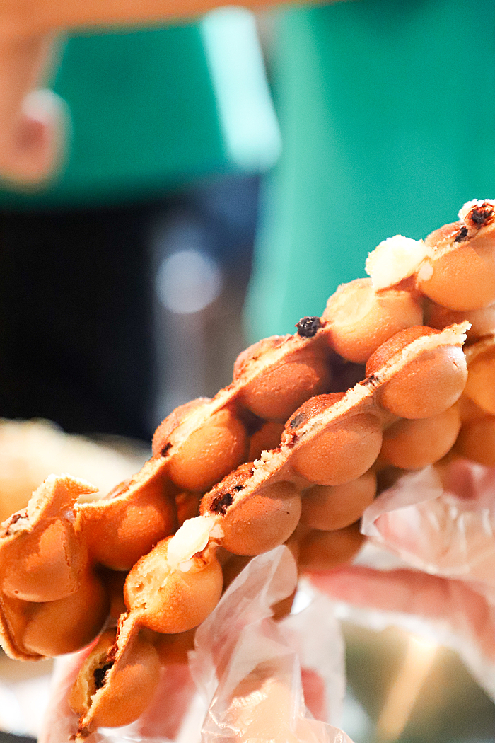 刚出炉的鸡蛋仔外皮脆脆的,每个小圆球里都塞满了榴莲馅料。