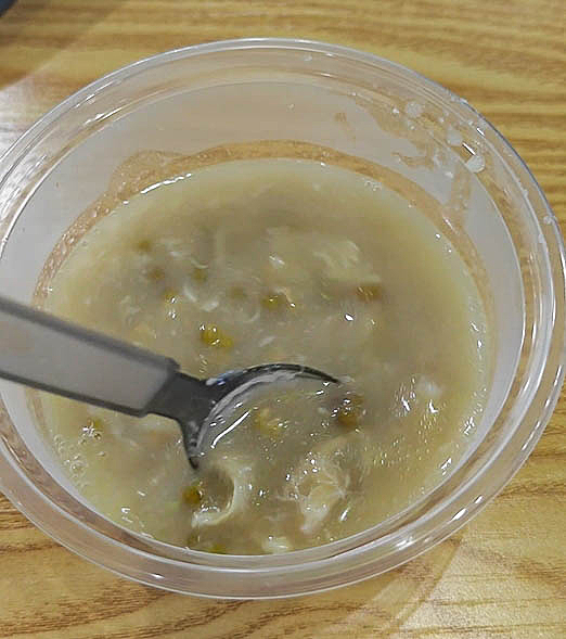 绿豆与榴莲的搭配意外和谐,绿豆粥带有淡淡榴莲香,搅拌间能看到榴莲果肉。