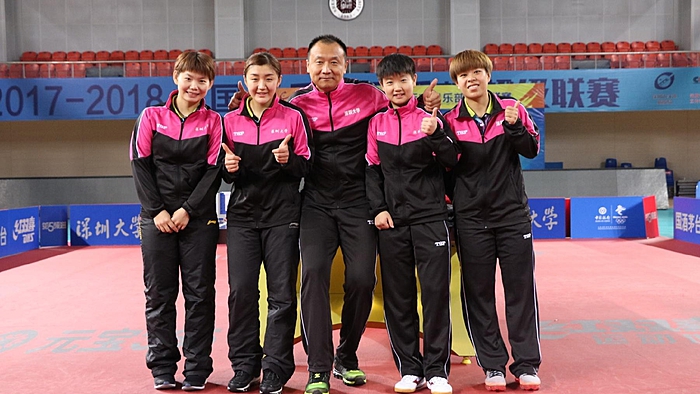 背靠深圳大学,加以省市的支持,深圳大学俱乐部形成了“大学+专业队+赛事运营”独一无二的建队模式。成立之初,俱乐部邀请彼时毕业不久的校友陈梦加盟,并向年仅15岁的国家二队小将孙颖莎抛出橄榄枝,加上钱天一、何卓佳、王艺迪,组建了首支深圳大学队。