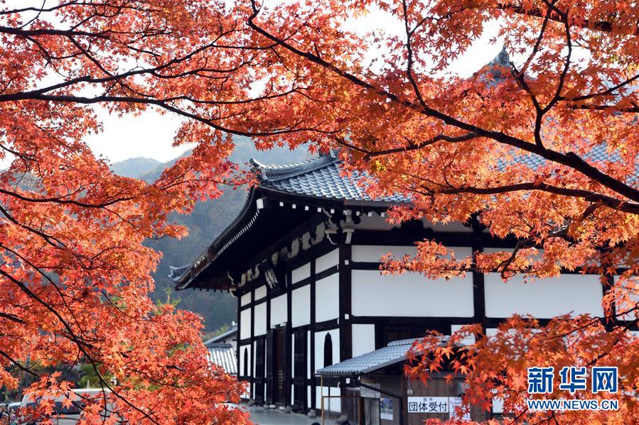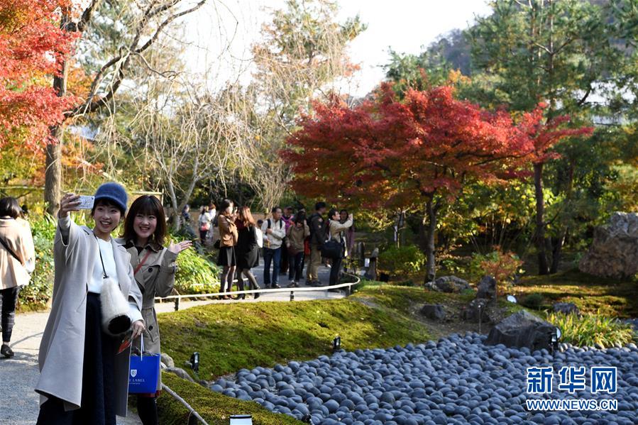 这是11月17日在日本京都岚山拍摄的红叶。日本京都岚山近日进入红叶季。