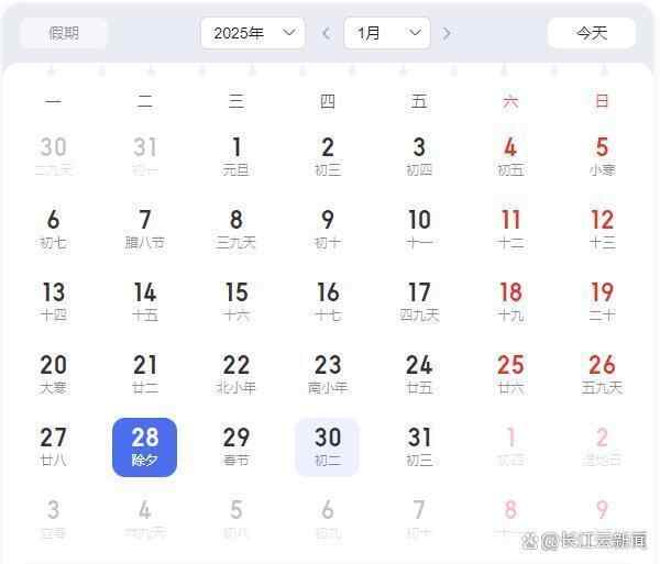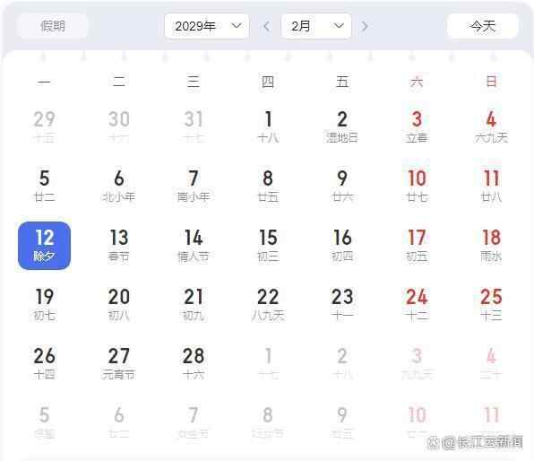 因为从2025年开始直到2029年,连续五年的除夕,都是“大年二十九”。这些日子分别是:2025年1月28日、2026年2月16日、2027年2月5日、2028年1月25日和2029年2月12日。
