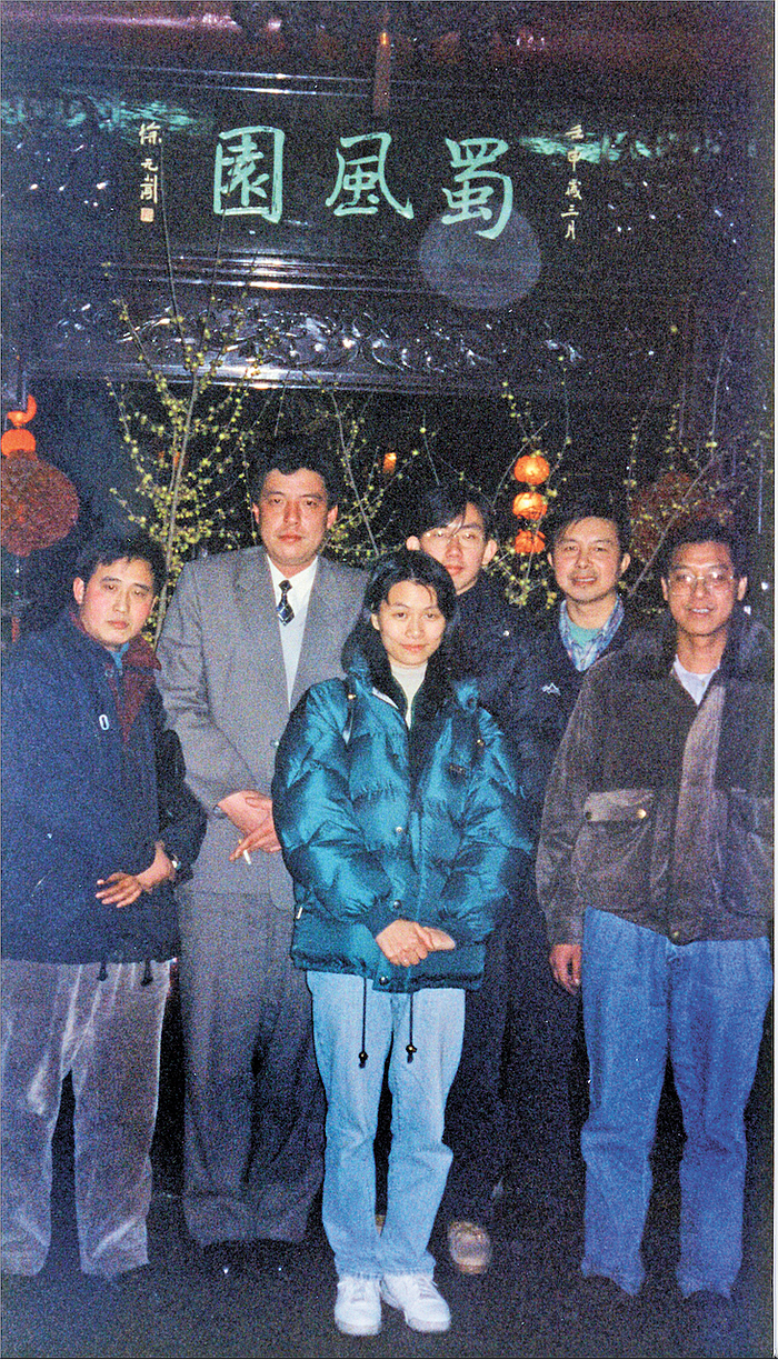 ▲1997年1月,周文乐(左四)首次赴成都出差留影。资料图