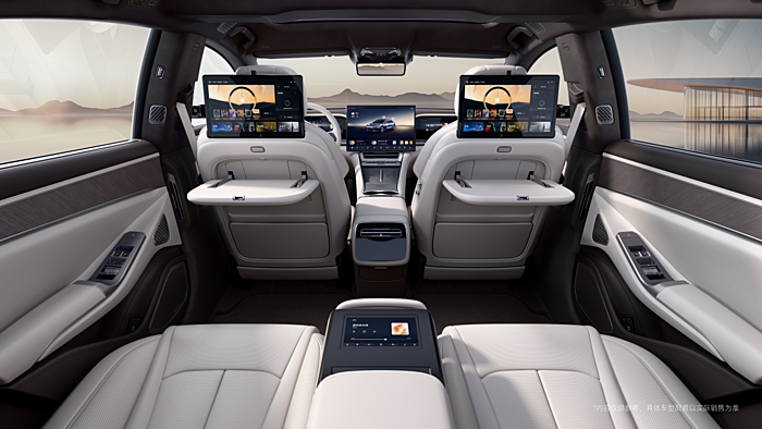 “双倍豪华”是腾势Z9内饰最大的亮点之一。腾势Z9配备10向电动调节的后排双浮感舒适座,支持按摩、加热、腿托调节等功能,双桌板、双12.8英寸多媒体屏和7英寸扶手屏、双50W无线快充、弹出式双杯托、双柔光化妆镜、前后智能冷暖双冰箱,以及百万级后排双侧窗电动遮阳帘等豪华舒享,既满足商务场景下的办公需求,也提供家庭场景下的娱乐享受。
