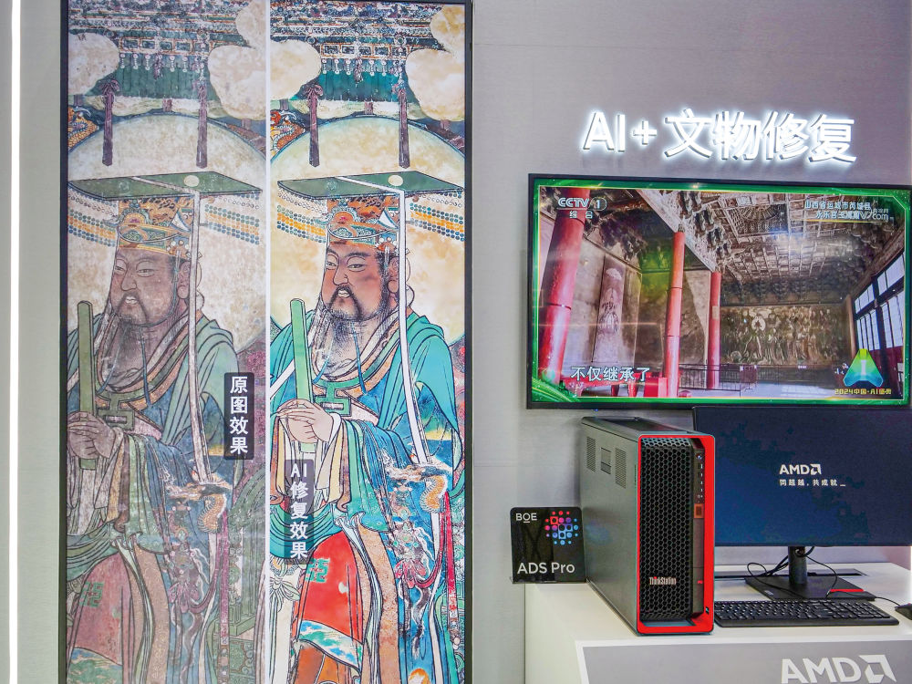 2024年11月5日,第七届进博会技术装备展区AMD展台的“AI+文物修复”技术展示。新华社记者王益亮摄