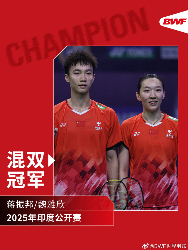 恭喜蒋振邦/魏雅欣夺得2025年印度公开赛混双冠军,恭喜吉凯尔/德尔吕获得混双亚军!