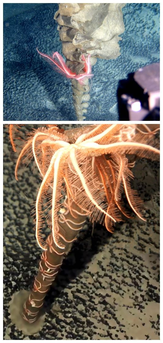 在西太平洋海山,我国科学家发现了一种新的“偕老同穴海绵”。在管状的“爱情公寓”外侧,伸出许多细长的“树枝”。这些“树枝”就像一个个海底停靠站,让海百合、蛇尾、虾等小生物附着生活。看起来,整株海绵就像一位在海底掌管生命繁荣的女神。科学家用希腊丰收女神的名字将这一新种海绵命名为“德墨忒尔海绵”,也称为“女神海绵”。