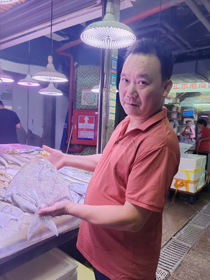 闲聊中他也感叹,在东门市场守着这个冰鲜鱼档,一晃就30多年了,那些凌晨两三点起床,下午客少的时候在档口底下眯一下,晴天一身汗,雨天一身泥的日子,说起来都是寻常事。辛苦不算什么,他最骄傲的是,守着这个摊档,妻子带着孩子们落户深圳,过上了有房有车的好日子,孩子还考上了不错的大学,未来一片光明。