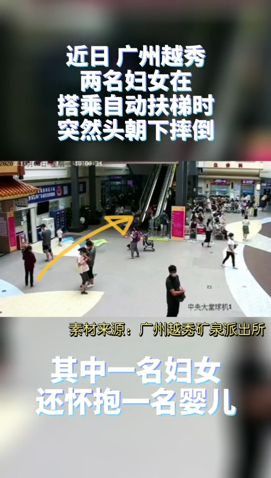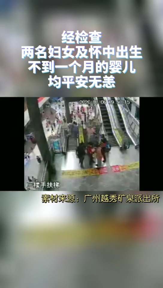 10月6日上午,广州市越秀区矿泉派出所两名民警在重点单位广东省妇幼保健院进行例行检查。民警在警务室和保卫科长交流时,突然听到外面有人在大声呼救,民警立即夺门而出,发现有两名妇女头朝下脚朝上,摔倒在自动扶梯上,那名年长的妇女怀里还抱着一个婴儿,情况万分危急!