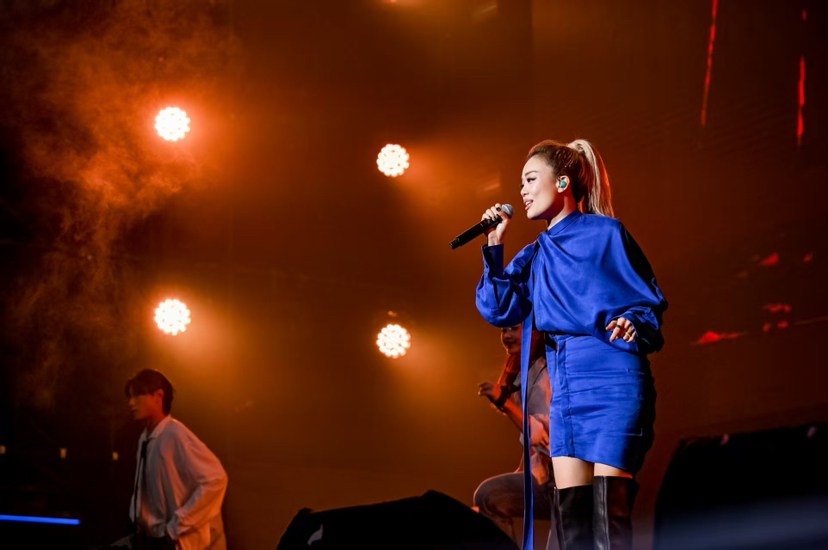 当晚的演出中,四位歌手轮番登场,用歌声点燃观众热情。关智斌率先亮相,以《LALA世界》《勇气情歌》带动全场节奏,随后献唱内地首唱曲目《永远的彼得潘》,并以经典合唱改编版《死性不改》引发全场大合唱;泳儿则以《ride it out》展现动感一面,随后用《花无雪》《普通朋友》《完全因你》等抒情佳作展现细腻声线,最终以代表作《感应》收尾,尽显实力派唱将风范;洪卓立带来《弥敦道》《你好吗》《回到最爱的那天》《目前》多首治愈系歌曲,熟悉的旋律让现场观众沉浸其中,《少年游记》更传递出青春朝气;压轴登场的容祖儿气场全开,《隆重登场》《没关系》接连引爆气氛,而《痛爱》《心淡》《挥着翅膀的女孩》等金曲则展现了她扎实的唱功与情感张力,最终以《越唱越强》收尾,全场灯光与荧光棒交织成星海,为演出画上完美句点。