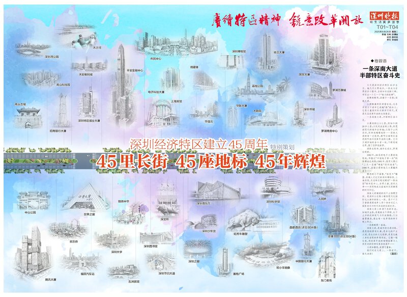 熟悉的小平画像、“拓荒牛”雕塑,承载人们记忆的深圳博物馆、上海宾馆,见证特区规划建设“一路向西”的市民中心、世界之窗、深圳大学……共同构成这座城市风雨兼程的时代印记。