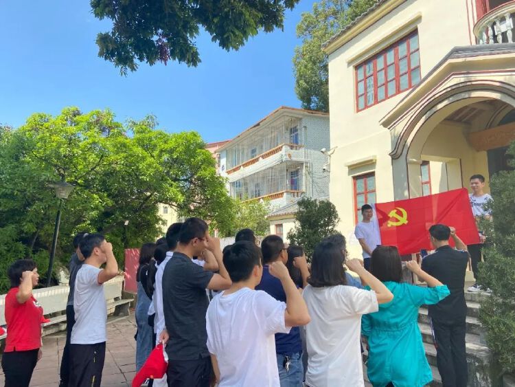 随后,参加活动的全体党员和入党积极分子面对着鲜红党旗,庄严重温了入党誓词。