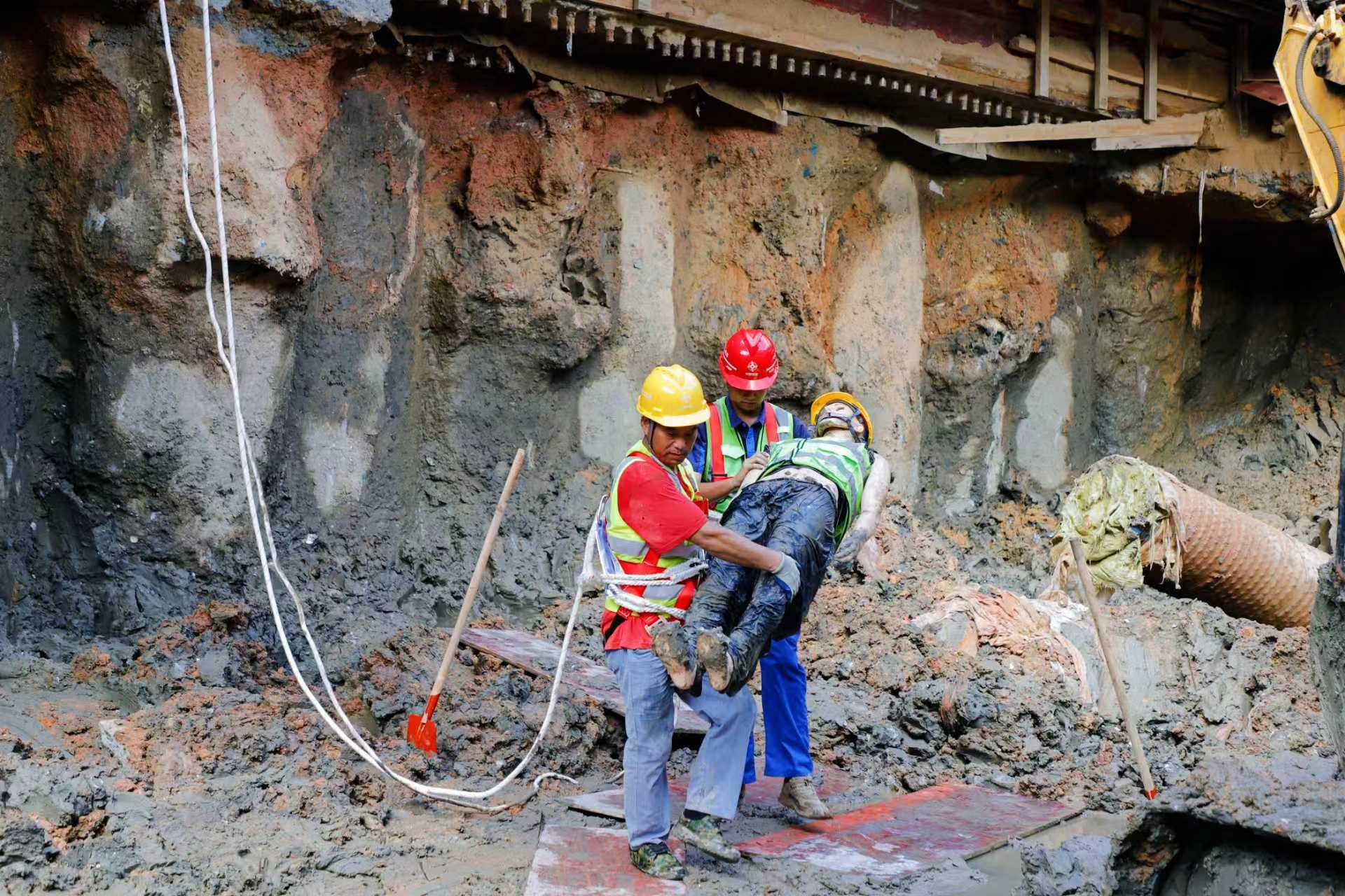 此次演练严格模拟地铁基坑开挖作业中突发涌水涌砂的真实险情:随着基坑开挖深度逐步增加,坑壁突然出现水流渗漏,随后渗漏量快速增大并伴随泥沙涌出,若不及时处置,将可能导致基坑边坡失稳、周边地面沉降,严重威胁施工安全与周边环境。